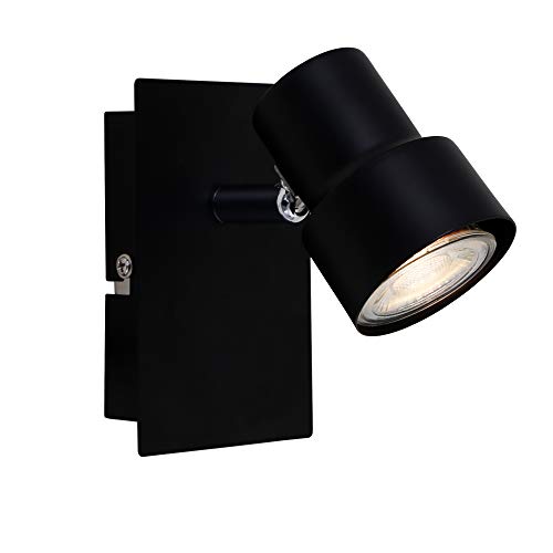B.K.Ljus – vägglampa inomhus, vridbar, GU10-fattning, max. 9 watt, vägglampa inuti, väggspotlight inuti, väggbelysning, sovrum, halllampa, vägglampa, 9 x 9 cm, svart