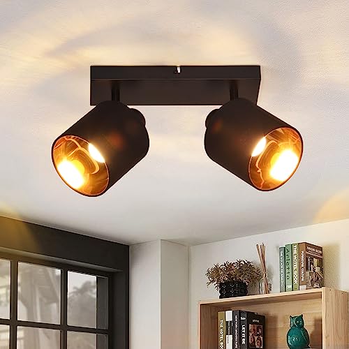 Glitzerlife LED taklampa svart 2 låga - takspotlight E14 Vintage Taklampor 350°vridbar väggspotlight för hall vardagsrum sovrum kök MAX.25W (utan glödlampa)