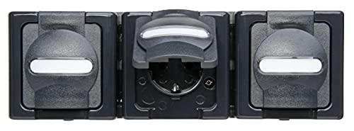 Kopp BLUE ELECTRIC – Vägguttag, Skyddande Kontaktuttag med Gångjärnslock, 3-vägs, Färdigkopplad, Färg: Antracit, 131315006