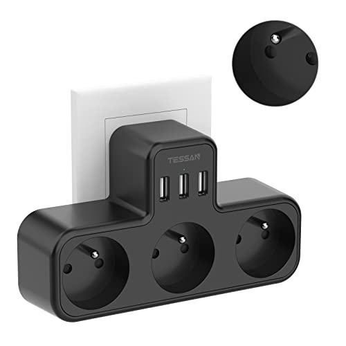 TESSAN USB Eluttag 3 Vägs Multikontakt, Vägguttag USB med 3 USB laddare Adapter (3 A), 6 i 1 3600W USB Uttag 3 Vägs, Grenuttag USB, Väggladdare Kompatibel med Telefon, Bärbar Dator