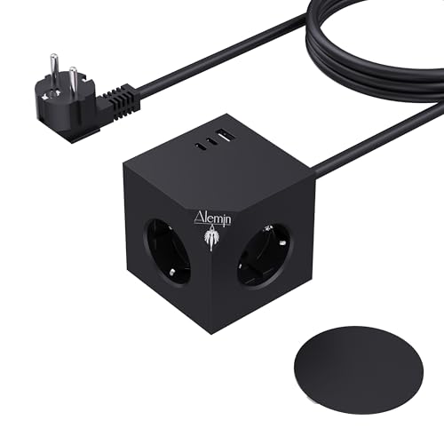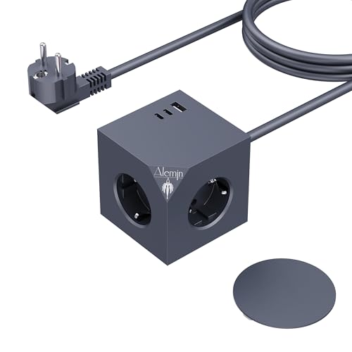 TESSAN Grenuttag Cube, 6 i 1 Uttagsadapter med 3 Schuko och 3 USB A, Flera Vägguttag med Strömbrytare, Kompatibel för Hem, kontor