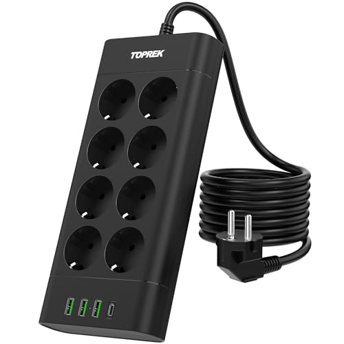 Grenuttag 8-vägs med överspänningsskydd Strömlist USB C, 4000W Strömlist 8-vägs Grenuttag 4 USB, Flera Uttag Kraftremsor med Strömbrytare, Uttagslist Väggmontering USB-laddare bordsuttag Vägguttag 2M
