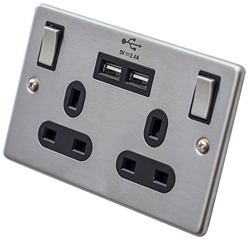 uttag 13 A vägguttag med dubbla USB-uttag - vit_P rostfritt stål
