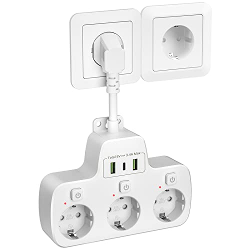 TESSAN USB Eluttag 3 Vägs Multikontakt, Vägguttag USB med 3 USB laddare Adapter (3 A), 6 i 1 3600W USB Uttag 3 Vägs, Grenuttag USB, Väggladdare Kompatibel med Telefon, Bärbar Dator
