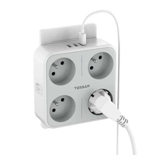 TESSAN Multipel Grenuttag med USB, 4 French Portar 4000W och 3 USB Portar, 7 i 1 Vägguttag med Avbrytare, USB Laddare för Resor på Hemmakontoret, Kompatibel med Telefon, Pad Etc.