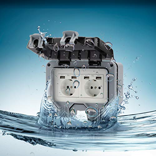 STEEIRO Ytteruttag vägguttag med USB-kontakt för utomhusbruk uttag vattentät IP66 dammsäkert trädgårdsuttag ytmonterad skyddskontakt för våtrum utomhus med lock