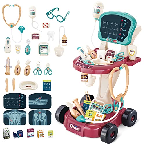 deAO Barndoktor leksak, 29 tillbehör med stetoskop och elektronisk medicinsk vagn, rollspel set, för barn 2 3 4 5 6 år