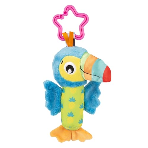 Playgro Clipsy Tamika Toucan Sensorisk tukan med klämma för vagn, ljud, texturer och bitring, leksak för nyfödda