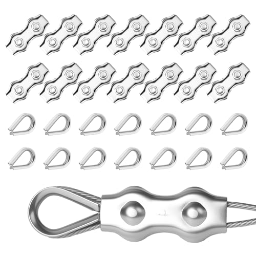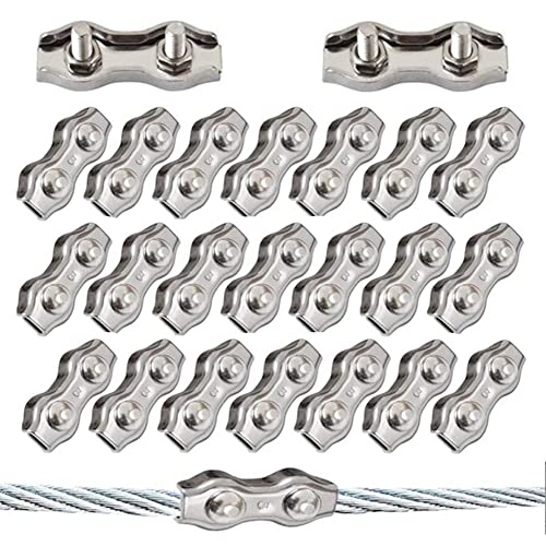 Flintronic Vajerklämma, 28 stycken duplex klämma 4 mm och vajerkabelkausar 4 mm, M4 Duplex rostfritt stål 304 vajervajer vajerklämma för vajer stålvajer vallina skogsrep markis fast