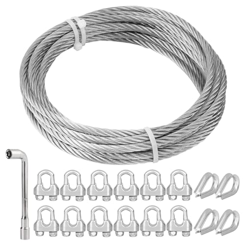 TooTaci Vajer i rostfritt stål 6 mm/5 m, 304 rostfritt stål stålvajer 6 mm set, stålvajer med öljetter, M6 vajerklämma, 6 mm vajerkabel för upphängning kabel, reprulle vajerhjul, gardinlina, växtstöd