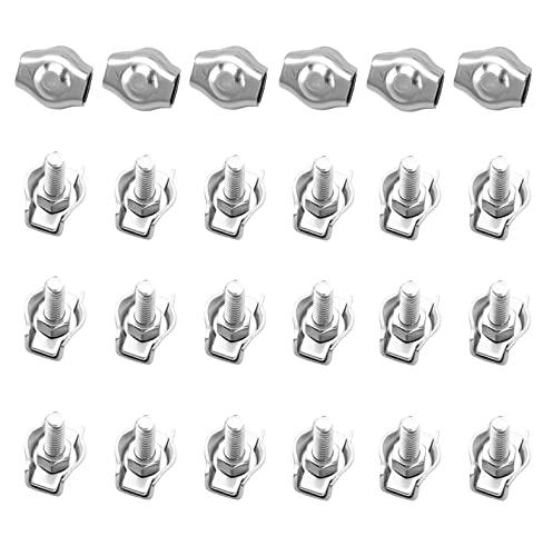 ZEONHEI 20 stycken 10 mm vajerklämma, M10 rostfritt stål strykvajerklämma, U-bult, vajer, ståltråd, silver
