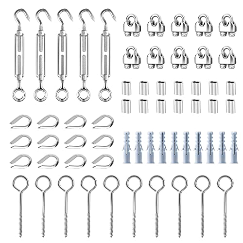 TOOGOO Taci 3 mm stålspännare rostfritt stål set, 3 mm repspännare för trådspännare/staketspännare, 5 stycken M5 spännlås rostfritt stål, 10 stycken M5-öljetter skruvar, M3 vajerklämma, fingerborgar,