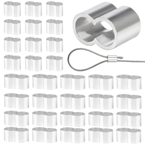 SWTYExt 50 stycken klämhylsor 8 mm pressklämmor dubbla hylsor klämhylsor kvävningsklämmor av aluminium vajerklämma 8 mm aluminium crimpögla för gummirep expanderrep presenning vajer kabel