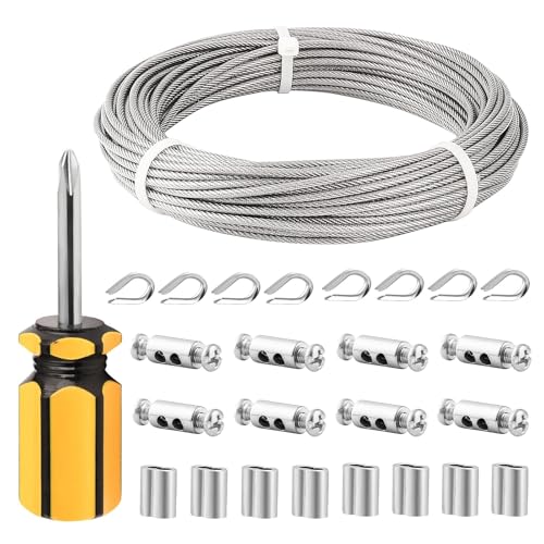 YSDMY vajer rostfritt stål 10 m stålvajer trädgårdstråd 2 mm PVC-hölje | vajerklämma M2 vajerklämma | vajertråd kause 2 mm | aluminiumhylsor aluminiumklämma 2 mm
