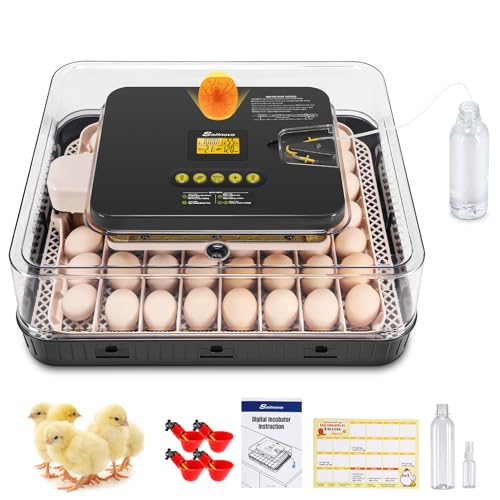 Sailnovo Automatiska ägginkubatorer, 56 ägginkubatorer med automatisk äggvridning och automatisk befuktning, inkubator för kycklingägg, vaktel, anka, grå