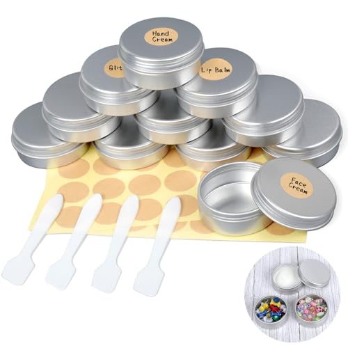 AiQInu 11 stycken 20 ml aluminiumburkar, vakuumbehållare med lock, aluminiumburkar med skruvlock, etiketter och minispatel, falska för resesalong och nybörjare