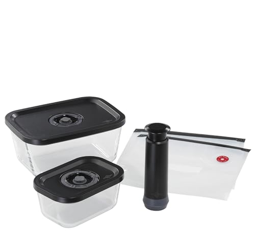 Köksprofi EASYFRESH vakuumset | 5 delar | 1 x vakuumpump manuell, 1 x vakuumburk S och L, 2 x vakuumpåsar 22 x 21 cm | borosilikatglas, högkvalitativ plast | beredning och förvaring