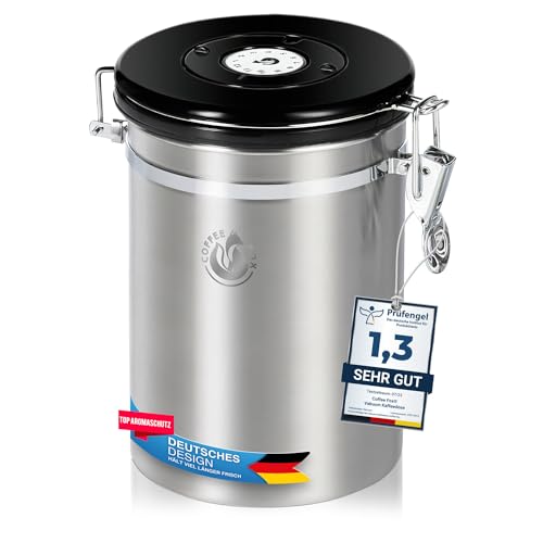 LINGJIONG Kaffeburk, kaffeburk lufttät kaffebönor behållare rostfritt stål kaffebehållare förvaringsburk vakuumburk förvaringsburk för förvaring för kaffebönor, pulver, te, nötter, kakao, 1 800 l