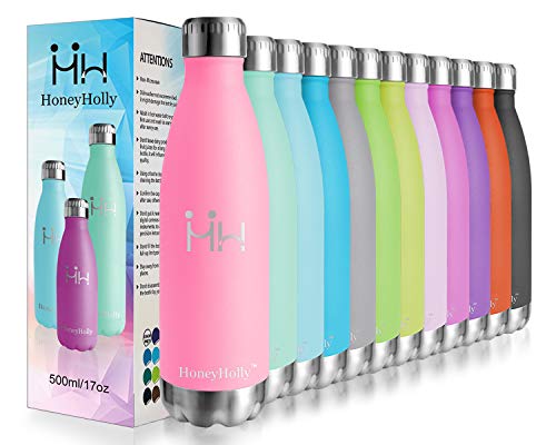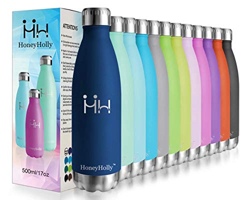 HoneyHolly Termosflaska i rostfritt stål, termosflaska 500 ml, BPA-fri läckagesäker vakuumisolerad termoskanna 0,5 l, dubbelväggig vakuumflaska för cykel, resor, sport, yoga, camping, cykel