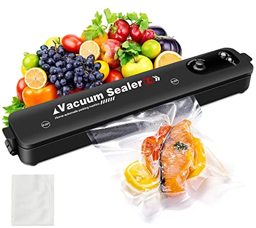 MeteMake vakuumförpackare, automatisk vakuumförpackare, vakuumförsegling med en knapptryckning för bevarande av torr och fuktig mat, kompakt vakuummaskin (svart)