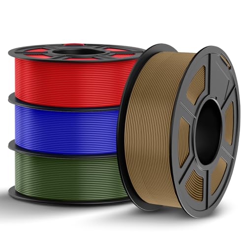 TECBEARS PLA filament 1,75 mm paket, 4 kg 3D-skrivarfilament PLA, vakuumförpackning, mått +/- 0,02 mm, 1 kg per spole (2,2 pund), totalt 4 kg 3D-filament (blå + röd + kaffe + olivgrön)