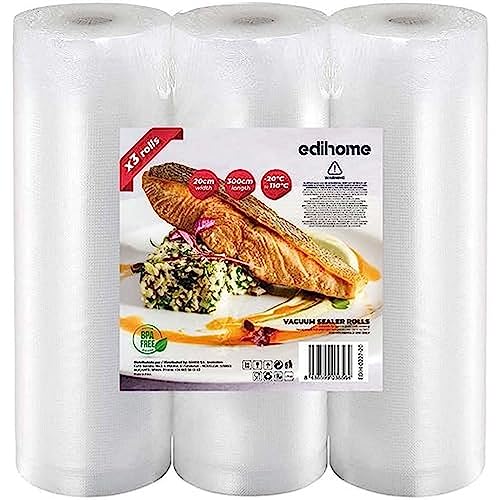 Edihome, Tom matpåsar, 20 x 300 cm, 3 rullar, påsar för vakuumförpackning, konservering, vakuumförpackning, BPA gratis, sous, vide (3 rullar 20 cm x 3 m)