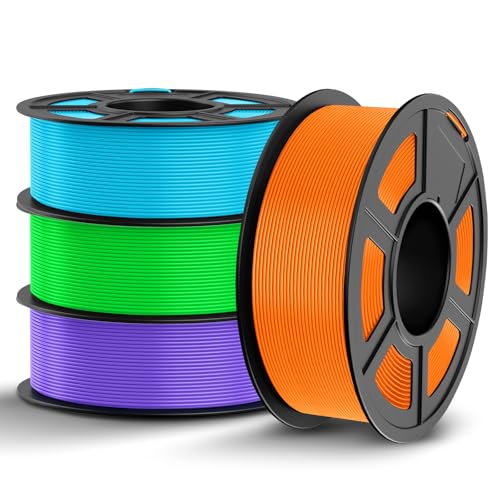 TECBEARS PLA filament 1,75 mm paket, 4 kg 3D-skrivarfilament PLA, vakuumförpackning, mått +/- 0,02 mm, 1 kg per spole (2,2 pund), totalt 4 kg 3D-filament (cyan grön orange lila)