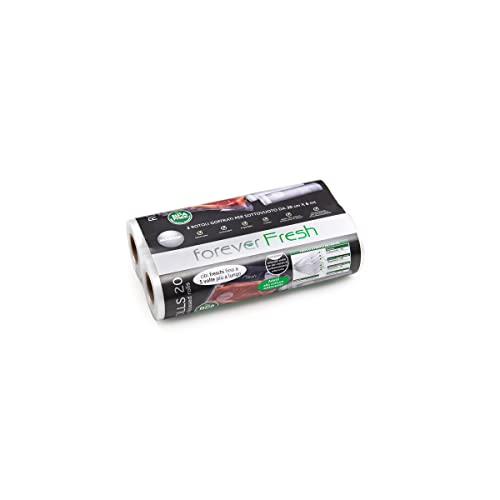 Präglad rulle vakuumförpackning (2 stycken) (20 cm x 6 meter) för alla typer av hushållsförpackare, foodsaver, lacor, fodral, silvercrest etc.