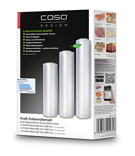 CASO professionella folierullar set 4/1 st. 20 x 600 cm, 1 st. 25 x 600 cm, 1 st. 30 x 600 cm 150 µm, för vakuumförpackning/foliesvetsutrustning, BPA-fria, mycket starka, slitstarka, koksäkra
