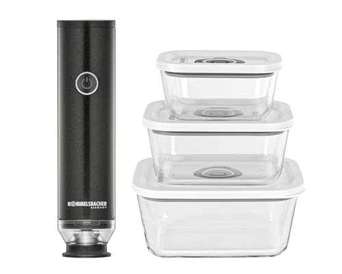ROMMELSBACHER Handvakuumtätare set VAC 253/S, vakuumförpackning, enhandshantering, kraftfullt, hållbart batteri, laddning via USB, inkl. 8 zip-påsar, 3 vakuumglasbehållare