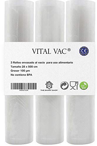 VITAL VAC 3 Vakuumförseglingsrullar 28 x 500 cm för Vakuummaskin | Plastpåsar Rulle Kompatibel Med Alla Vakuumtätare för Hemmet