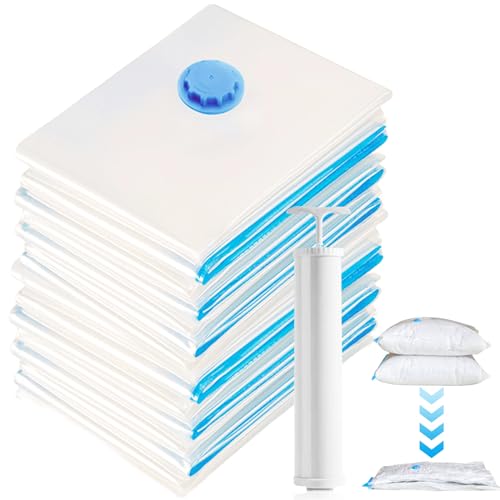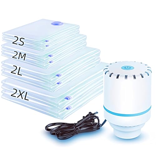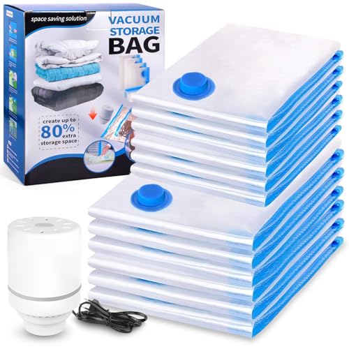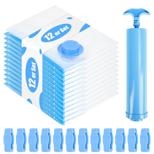 Vakuumpåsar kläder med elektrisk pump, 12 stycken - 5S (40 x 60 cm), 4M (50 x 70 cm), 3L (60 x 80 cm) - perfekt för filtar, täcken, kuddar, resor och flytt