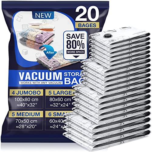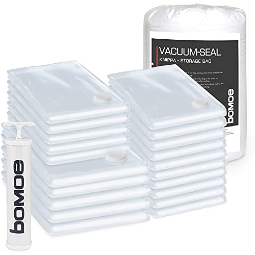 bomoe Vakuumpåsar Knippa kläder, 20 st återanvändbara vakuumpåsar, kompressionspåsar med pump, vakuumpåsar, storlekar 10XS, 5S, 5XL