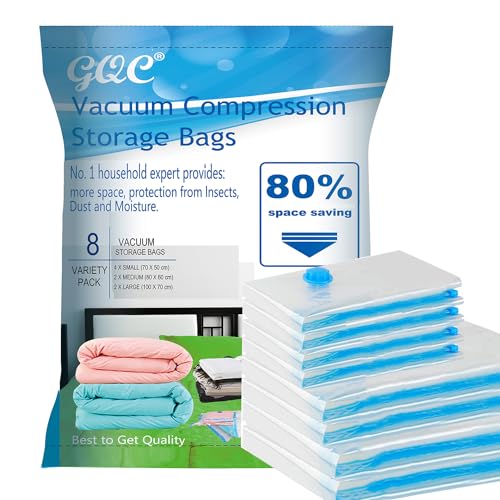GQC Premium vakuumförvaringspåsar. 80% mer förvaring! Vakuumpåsar kläder Dubbel dragkedja tätning och trippel tätning turboventil för maximal platsbesparande