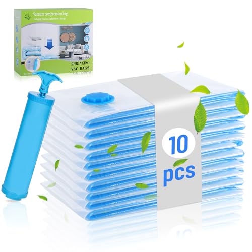 Chuner Vakuumpåsar för kläder, 10 stycken, 70 x 50 cm, PA- och PE-material, 80 % utrymme, återanvändbar, handpump ingår