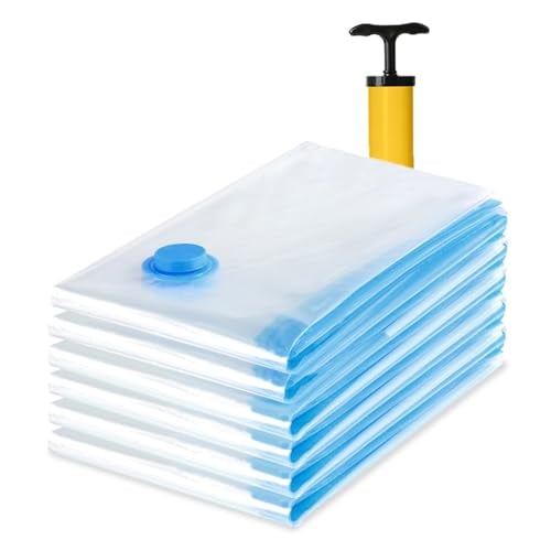 AiQInu vakuumpåse för kläder resor, 6 stycken förvaringspåsar resa återanvändbara vakuumpåsar för kläder, vakuumpåsar för täcken med dammsugare handpump och förvaringsväska för tvätt