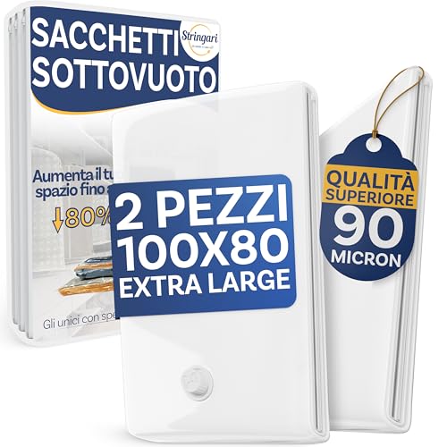 Stringari 2-pack XL-påsar, 100 x 80 cm, vakuumpåsar för kläder, högkvalitativa kuvert för täcken