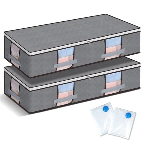AiQInu Förvaringsuppsättning, 2 delar stor kapacitet under sängen organisatör med 2 vakuumpåsar för kläder, filtar, täcken (97 x 43,5 x 20 cm)