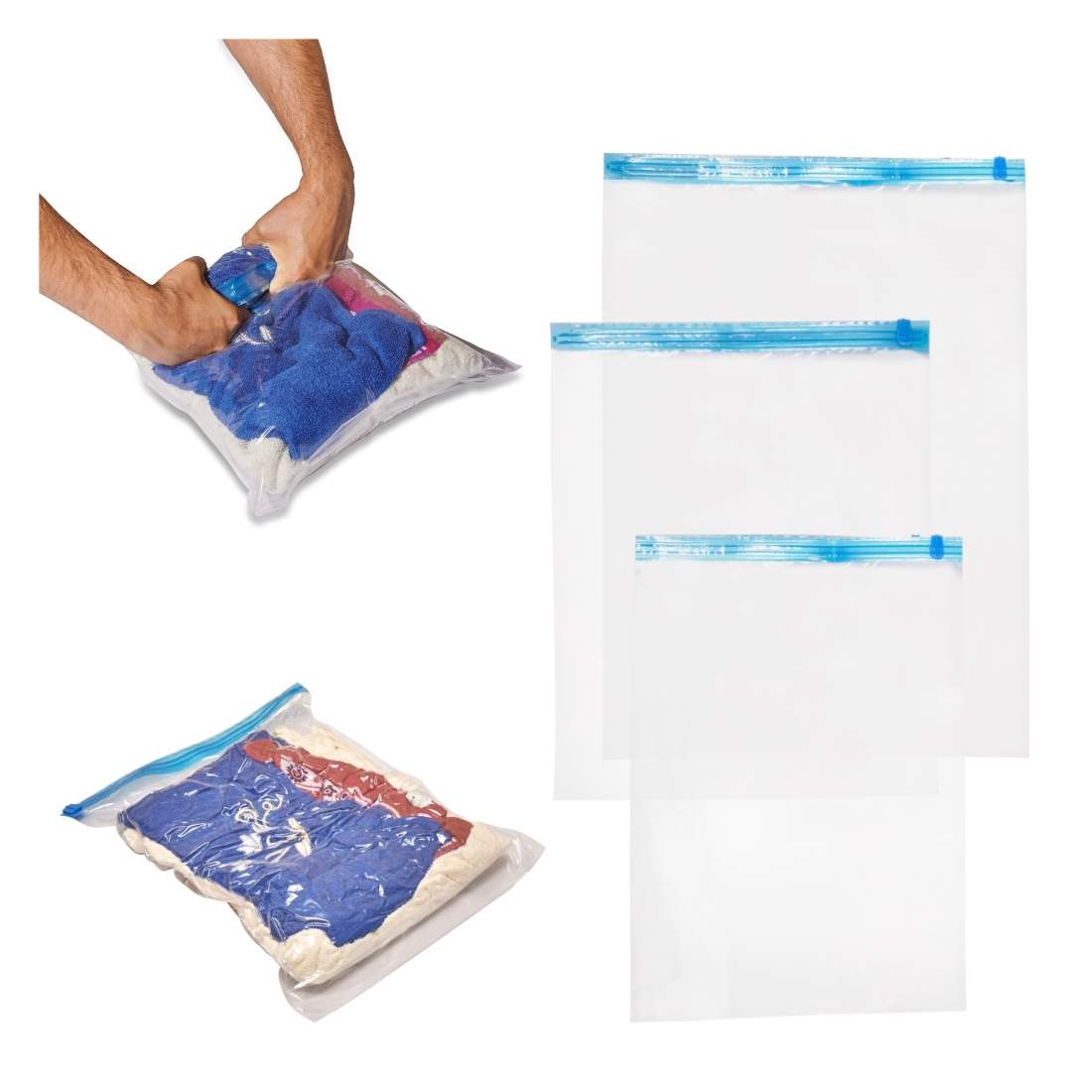 Vakuumpåsar för kläder, 3 storlekar, 9-pack