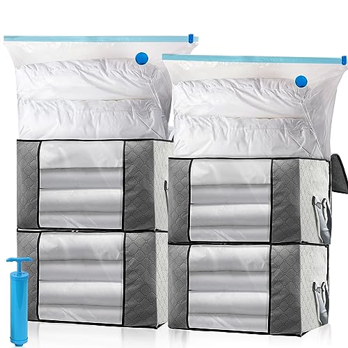 Leavans 4 stycken klädlådor, 4 vakuumpåsar, utrymmesbesparande kläder och 1 pump, garderobslådor stor kapacitet för täcken, filtar, sängkläder