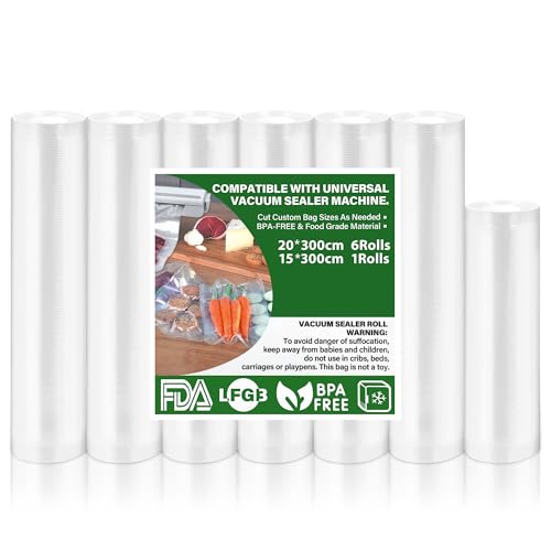 Vakuumpåsar 7 rullar Vakuumpuskar Mat 15|20x300cm, Vakuumfolie för alla Vakuumförpackare, Vakuumpåse BPA-fri, rivtålig, 190 µm, Sous Vide fryspåse för alla Mikrovågsugnar