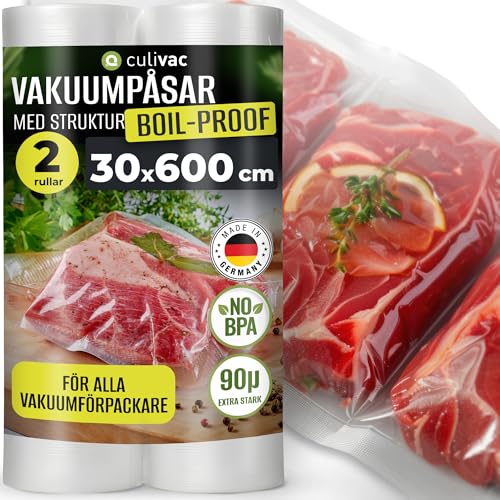 culivac 2 folierullar 30x600cm Vakuumrullar Cookproof för vakuumförseglare Vakuumförseglare Foliesvetsmaskin BPA-fri vakuumfilmrulle Vakuumpåse Vakuumpåsar Vakuumpåsar Påsar Rullar