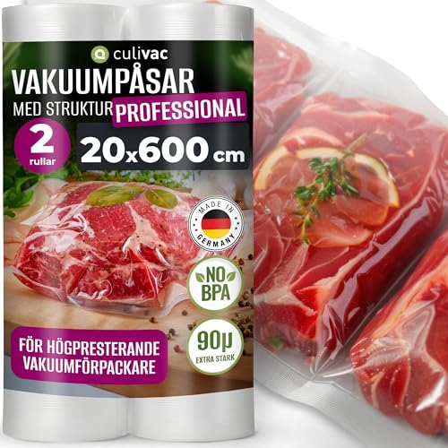 culivac 2 filmrullar 20x600cm vakuumrullar Pro för vakuumförseglare vakuumförseglare filmförseglare BPA-fri vakuumfilmrulle vakuumpåsar vakuumrullar filmpåsar vakuumpåsar rullar