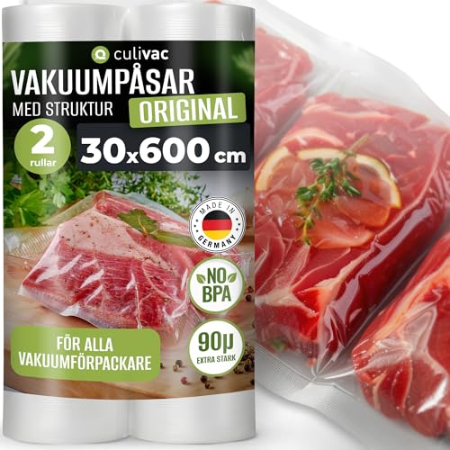 culivac 2 filmrullar 30x600cm vakuumrullar original för vakuumförseglare vakuumförseglare filmförseglare BPA-fri vakuumfilmrulle vakuumpåsar vakuumrullar filmpåsar vakuumpåsar rullar