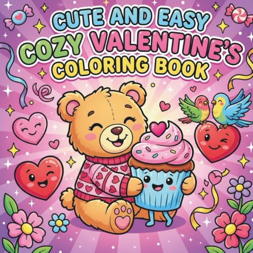 Cute And Easy Cozy Valentine's Coloring Book: Cute Valentine Coloring Book with Adorable Animals, Hearts & Sweet Scenes | Fun Bold & Easy Pages and Perfect Valentine Gift for Kids, Teens & Adults