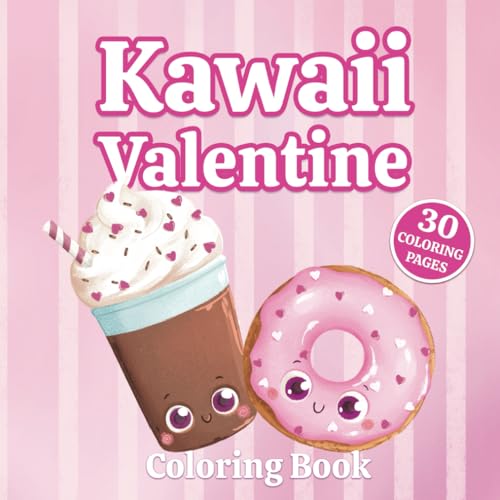 Kawaii Valentine Coloring Book: 30 dolcissime illustrazioni cibo da colorare in stile Kawaii per bambini e adulti