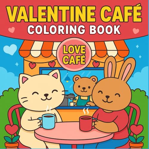 Valentine Café Coloring Book: Relaxing Love-Themed and coffee shop Scenes for All Ages