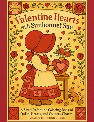 Valentine Hearts With Sunbonnet Sue: A Sweet Valentine Coloring book of Quilts, Quilting Hearts and Country Charm