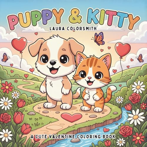Puppy & Kitty - A Cute Valentine Coloring Book: Adorable Valentine Animal Scenes with Kittens, Puppies & Sweet Love Moments for Little Kids