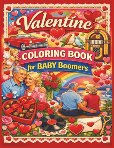 Valentine Coloring Book For Baby Boomers: 50 Large-Print Valentine Designs Inspired by Love, Memories, and Baby Boomer Nostalgia